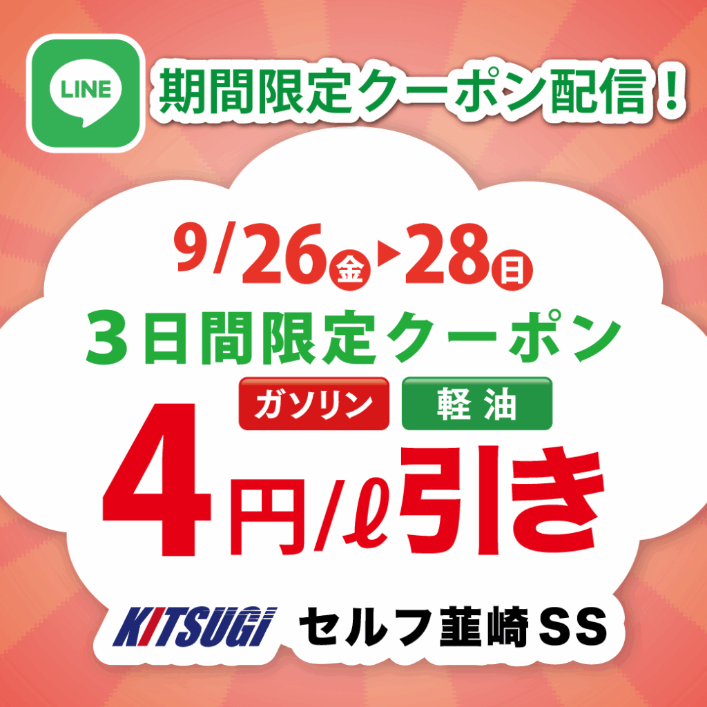 4円/ℓ引きクーポン配信🔥