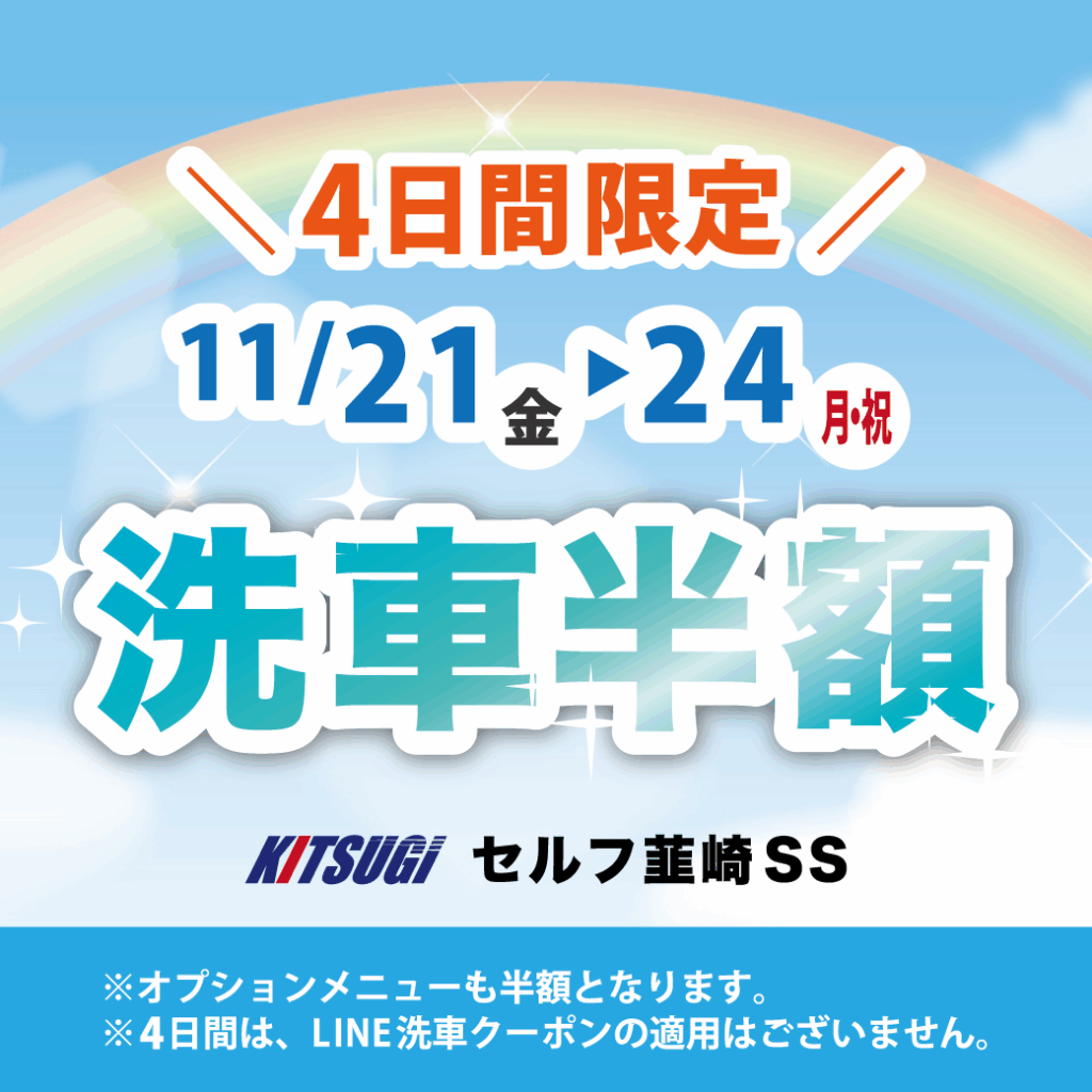 🚗洗車全メニュー半額‼️